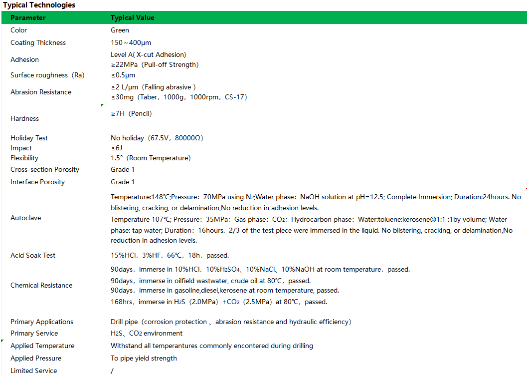 A high-performance powder coating,primary servicing high temperature and high pressre environment containing H2S and CO2.