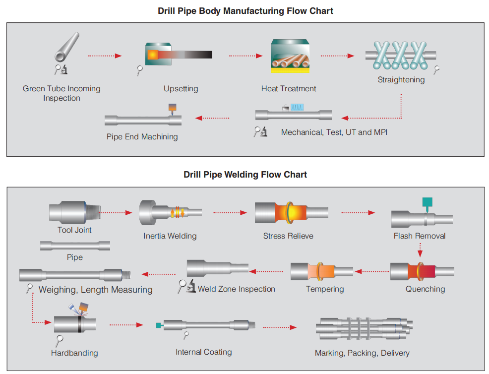 ·Integration: drill pipe tool joint manufacturing, upsetting, heat treatment and friction welding, hardbanding wire production and application, internal coating material production and application.