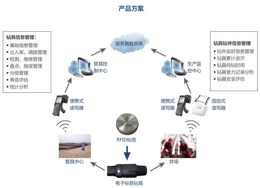 海隆電子標(biāo)簽鉆具及物聯(lián)網(wǎng)管理系統(tǒng)——通過每根鉆具產(chǎn)品上安裝無線射頻識別(RFID)標(biāo)簽,使其擁有獨一無二的“電子身份證”,結(jié)合智能讀寫設(shè)備和物聯(lián)網(wǎng)管理系統(tǒng),高效、精確地實現(xiàn)鉆具生產(chǎn)、出入庫、調(diào)撥、使用、維修、檢測、報廢等全生命周期的管理。