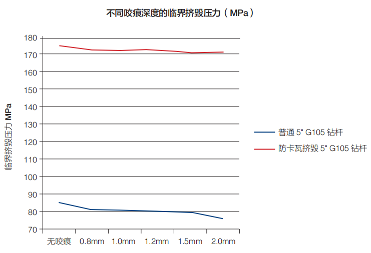 ·提高鉆桿防卡瓦擠毀能力,以5″ 19.50lb/ft鉆桿為例,鉆桿抗擠毀能力提高了140%。